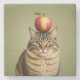 En konstig katt med äppelbalansering ovanpå hans huvud.