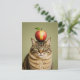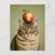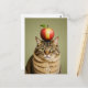 En konstig katt med äppelbalansering ovanpå hans huvud.