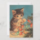 Förtjusande med den här vintage-stil-julkortets lekande charm, med en eländig katt som leker med färglös sträng ljus. Detta kort är omgivet av en festlig scen i helgdag med ett ljus med tvillingande och en mysigt atmosfär, och fångar säsongens glädje och stollig. Perfekt för kattälskare, denna nostalgiska utformning är ett hjärtskärande sätt att sprida helgdag.