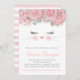 Kattbabyduschinbjudan med adjektiv vattenfärg kitten ansikte på rosa och vit rand bakgrund. Dessa kattduschinbjudningar är lätta att anpassa för din händelse genom att helt enkelt lägga till din information.