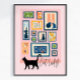 Kattdam Kattälskare Modern Dekor Rosa Färgrik