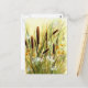 En vattenfärgsbild av ett cattail fält på ett vykort