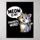 Den här charmerande grafiken har en tecknad i lycklig med ett unikt päls som blockeras av färg i blått, orange, gult och lila, sport en proaktiv polka-prickad buktid och en liten klocka. En tal-bubbla bredvid katten stater "MEOW IS MY FAVORITE ORD" med resten av texten, "FAVORITE ORD", som visas djärvt nedan. Designen ställs in mot en solid svart bakgrund. Digital nedladdning endast för personlig använda.