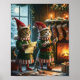 Ge liv åt julens magi med den här charmerande och vismliknande konsten med två adjektipomorfa katter klädda som jultomtens älvar. Kattarna är upptagna med att förbereda sig för tomtens ankomst. De jackar friska gröntar, rött och vitt strimlade balar och klassiska tomthattar. En katt granskar noggrant en checklista, medan den andra hänger ett glansigt prydnadsföremål med en varm, glödande kamera som dekoreras med strumpor och helgdag. Det mysiga rummet, belyst med ljus och en brinnande eld, utstrålar en magisk vinteratmosfär. Snö hamnar försiktigt utanför fönstret och lägger till i den förtjusande helgdag. Perfekt för helgdagskort, dekorationer och gåvor till både kattälskare och julentusiaster!