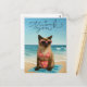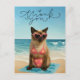 Skicka din tacksamhet med en lekfull touch av strandig charm! Detta tackkort har en bedårande siamesisk katt som solar sig på stranden, suger upp solen med överdimensionerade solglasögon och en uppfriskande drink i tass. Omgiven av strandelement som snigelskal, parasoller och palmer utstrålar detta kort en rolig, tropisk stämning. Perfekt för att uttrycka din tacksamhet med stil, vare sig det är för en sommargåva, en strandfest eller bara för att lysa upp någons dag med en söt, genomtänkt notis.
