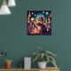 Katten i lycklig som firar jul ، tuxedo-katt poster.. Det här vackra djuret teckning visar en tuxedo-katt på vackra, ljusa färger. Förutom denna underbara katt finns det ballonger, helgdag, träd och alla dekorationer, liksom fyrverkerier. Gör en underbar födelsedag, jul eller annan gåva till en kattälskare!