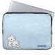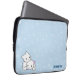 En laptop sleeve med ett roligt mönster och en gullig tecknadkatt kopplar ihop. Den har en blåttbakgrund med vit virvlar runt. I vänstersidan tränga någon den har en snuggling för pojke- och flickatecknadkattunge. I höger tränga någon dig kan skräddarsy ditt namn.