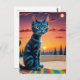 En lång smala tabby katt sitter på en färggranatskateboard-AI-genererad konst