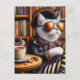 AI skapade en vacker pirat-katt med ett kaffe i en bokhandel