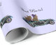 Grafisk illustration av katter som går på deras bröllopsresa i en klassikerbil. Sjal upp din gåva i detta härliga glansiga papper för din speciella händelse. Ändra texten med namn eller meddelandet för något tillfälle. Välj din favorit- bakgrundsfärg.