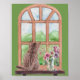 Vilken scen och rastlös poster - katten sitta vid fönstret tittar ut i grönten av landskapet med den vackra vas av blommor. Njut av den vackra poster för dig själv eller som gåva. Om du har frågor kan du skicka en chatta eller ett e-postmeddelande till charmdesignstudio@rcn.com så hjälper vi dig gärna.