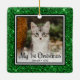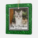 Den här vackra Kattens första julfotomornament med en grönt glitter kant, ord "Min första jul", ditt kattunge och namn och året kommer att se vackert ut på träd. Du kommer att värna om det och njuta av att ta ut det varje år för att sätta på dig träd.