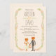 Den här charmerande bröllopsinbjudan innehåller ett höft- och snyggt-kattpar omgivet av ett garland med handdragna löv i en rustisk krandningsarrangemang