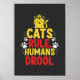 Lekfull och djärv, designen Katter härskar, människor sabbar har en kattronad katt med tassavtryck och accentuerade morrhår. Ett roligt sätt att visa kattens överlägsenhet och kattstolthed.