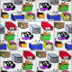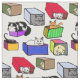 Det original- konstmönster av gulliga katter i färgrika kartonger, vid konstnären/märkes- Carolyn McFann av studion för två spinnakatter som skrivs ut på kvalitets- och anpassadetyg för katt, fläktar allra åldrar.
