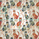 Fabrikat i mönster av vattenfärgkatter i flytande form, snurrande penseldrag inspirerade av kinesisk konst, i övertoningar av rött, blått, grönt och svart, blandat harmoniskt med stiliserat löv.