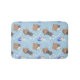 Katter i låda och mjölk droppar i blått badrumsmatta