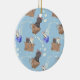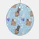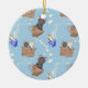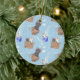 Katter i låda och mjölk droppar i blått julgransprydnad keramik