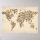 En karta i världen tillverkad av katters silhuetter i åldras.
