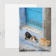 Katter som blundar i närheten av en av berömdens blå byggnad av Chefchaouen, Marocko.