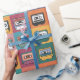 Bilden innehåller ett rutnät med stiliserade katter parade med reflexradion och kassettspelare i olika färg. Varje kvadrat har en unik bakgrund i färg och skapar ett intressant och visuellt tilltalande mönster. Kombinationen av vintage och lekfulla kattbilder framkallar en känsla av nostalgi och stollig, skapar den lämplig för retro-tetik eller som ett ekvigt dekorativt konst.