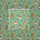Mönster av gulliga katter och andra nötkreatur på en grön bakgrund.