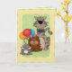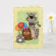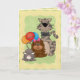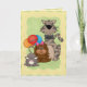 En liten grå färgkattunge, en gullig brun valp, en stor tabby katt som kommer med en grupp av färgrika ballonger med "den skriftliga grattis på födelsedagen" på den. Nyckfulla för barnfödelsedagar för en design - eller för folk som älskar gulliga folkartdjur.