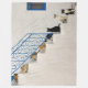 Många katter av olika färg sitta stod på trappor på en viskös trappa med en blå trappa av trappor i järn i en grekisk by, Cyclades, Egeiska ön, Grekland. Den här filten är en presentidé för kattälskare. Ett sött foto med spännande katter taget av Katho Menden.