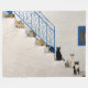 Katter på en vit trappa i en grekisk by fleecefilt