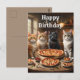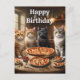Bilden visar fyra katter som sitter vid bordet och gör sig redo att ta itu med pizzan till middag.