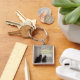 Katter tittar ut skärmdörr fyrkantig silverfärgad nyckelring