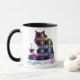 Inkluderar dina passioner, katter, att vaddera och kaffe? Här är en mugg som härskar alla dem! Presentera en vadderad långhårig kattsilhouette, en ånga kopp av abstrakt kaffe texten, katter, att vaddera och kaffe, de omvända sportarna en härlig vattenfärghjärta och ett band som du kan personifiera i ditt egna namn.