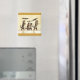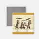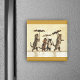 Den här kvadratiska magneten har en kattfamilj med två bruna katter och två kattungar som alla bär paraplyer medan de går i snö på blekens gult med guldfärgat gräns överst och grund.