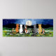 Kattfamiljen som tittar på Måne Natt Poster marin