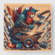 En katt med färgstarka päls och vingar hamrar metall i en ond, omgiven av olika urgamla vapen i en komplicerad fantasivärld.