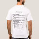 Baksidan av skjortan har en drabbel (100 ord kort historia) som heter "Prisa av en sjö". Framsidan har en kontur av en katt i ord-fragment från historien.