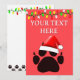 Tecknad kattfotsavtryck i svart. Redigera texten för att anpassa. Tomt på baksidan för handskrivna meddelanden. Anpassade julinbjudningar. Röd tomteluva version med julbelysning. Gåsideal för kattälskare.