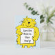 Spara datumet. En katt håller ett redo för att lägga till ett eget meddelande och även på baksidan. Spara på dagen.