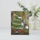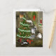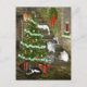 Åtskillig katthängning runt om en julgran i typisk kattmode, 2 försilvrar tabbies, en orange tabby som är svartvit, vit, long, och kort haired kattälskare semestrar vykortet