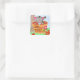 Vämda fyrkantiga klistermärken med en kattens visuella utformning som sipprar ut från ett äpple basket för att föra hans "Grattis på födelsedagen !" önskemål till ditt barn. Du kan redigera eller ta bort texten om du vill ha .använda bara knappen "Anpassa". © ArianeC Illustrations