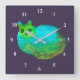 Kattkonst i den blå tjocken fyrkantig klocka