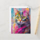 En levande, modern konsthatt porträtt med ljusa färger karaktär, inklusive teal, gult, rosa och orange. Den lekfulla paletten och de uttryckliga penseldragen i färg gör att kattens personlighet lever på ett roligt och uppfinningsrikt sätt. Denna livliga och djärva tolkning av ett klassiskt sällskapsdjur porträtt blandar contemporary stil med en känsla av charm och karaktär, perfekt för både kattälskare och konstentusiaster.