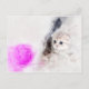 Kattlekar med rosa boll vattenfärg vykort