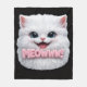 Vik in dig i mysig komfort med denna söta fleecefilta som visar en luddig vit katt med stora blå ögon och en djräv ”MJAUUU!” bubbelstilstryck. Perfekt för kattfantaster, barn och alla som uppskattar söta och lekfulla designmönster. Mjuk, varm och