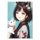 Kattöronflicka som håller en söt katt - fantasiful fototryck