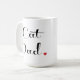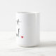 Vitmugg med svart bokstäver och en röd hjärta på avsluta.