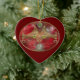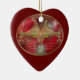 En stiliserad katt ansikte, som är gjord av glödande guld kurvor och kurvor, med bred grönt-guld öga, mot en röd rambakgrund.