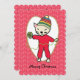 Katt med pyjamas och en färglös vinterhatt leker med en boll av garnet på detta julkort för trikåpa eller ger er lista med stickande och skurkiga projekt.