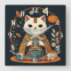 Katttea Time Japanskt Square-väggklocka Fyrkantig Klocka