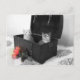 Fin vintage ser ut med kattungar i bagageutrymmet. Sötgjort i svartvit och målad redigering med vackra rödblommor som fokus på färg